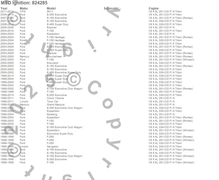 Crown Victoria, E-150 Econoline, E-150 Econoline Club Wagon, E-250 Econoline, E-350 Econoline, E-350 Econoline Club Wagon, E-350 Super Duty, E-450 Econoline Super Duty, E-450 Super Duty, Econoline Super Duty, Excursion, Expedition, Explorer, F-150, F-150 Heritage, F-250, F-250 Super Duty, F-350 Super Duty, Grand Marquis, Mountaineer