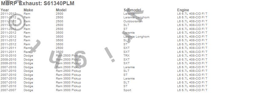 Below is an abbreviated list of applications for the Armor Lite Filter Back Exhaust System.
