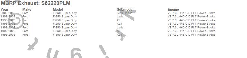Below is an abbreviated list of applications for the Armor Lite Turbo Back Exhaust System.