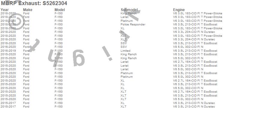 Below is an abbreviated list of applications for the Armor Pro Cat Back Exhaust System.