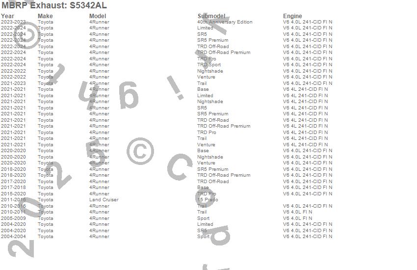 4Runner, Toyota, 2024, 2023, 2022, 2021, 2020, 2019, 2018, 2017, 2016, 2015, 2014, 2013, 2012, 2011, 2010, 2009, 2008, 2007