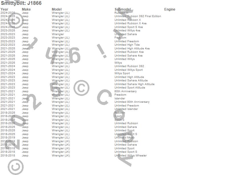 Wrangler (JL), Jeep, 2025, 2024, 2023, 2022, 2021, 2020, 2019, 2018