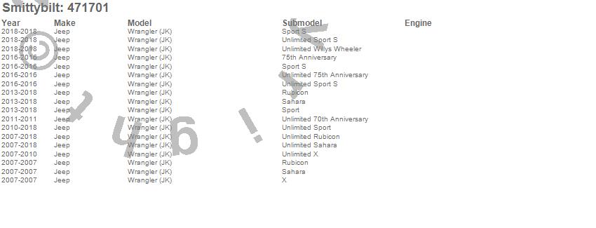 Wrangler (JK), Jeep, 2018, 2017, 2016, 2015, 2014, 2013, 2012, 2011, 2010, 2009, 2008, 2007