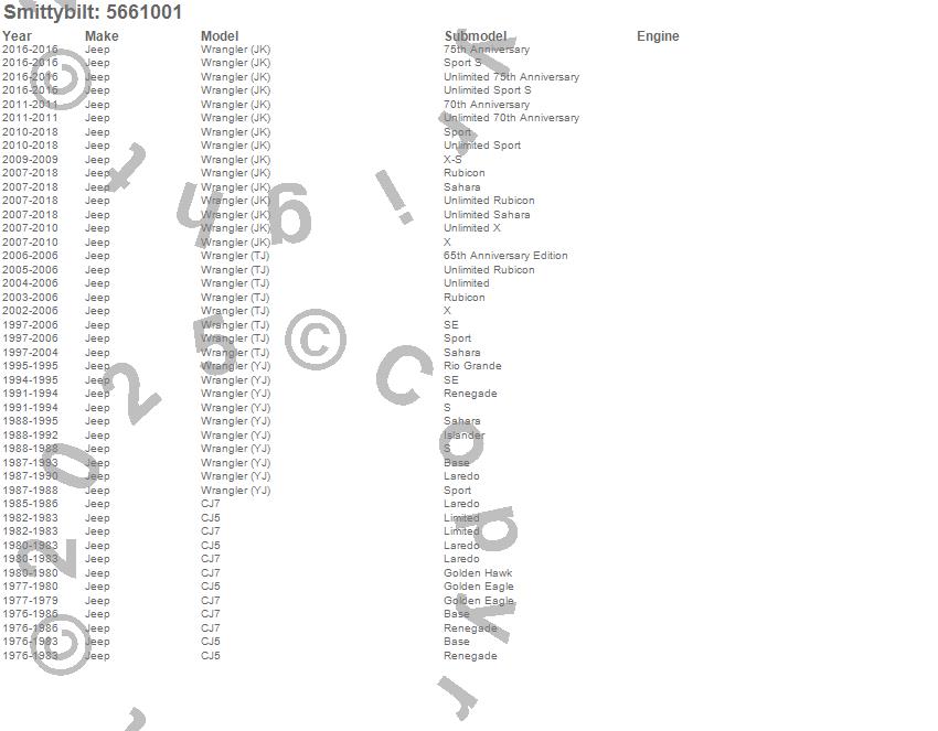 CJ5, CJ7, Wrangler (JK), Wrangler (TJ), Wrangler (YJ), Jeep, 2018, 2017, 2016, 2015, 2014, 2013, 2012, 2011, 2010, 2009, 2008, 2007, 2006, 2005