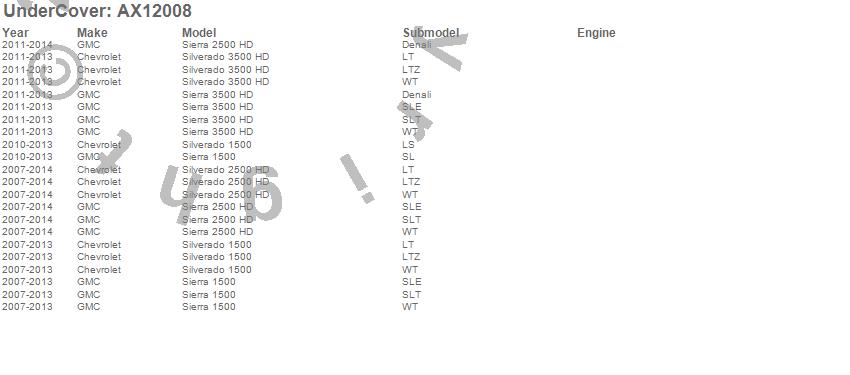 Below is an abbreviated list of applications for the Armor Flex Tonneau Cover.
