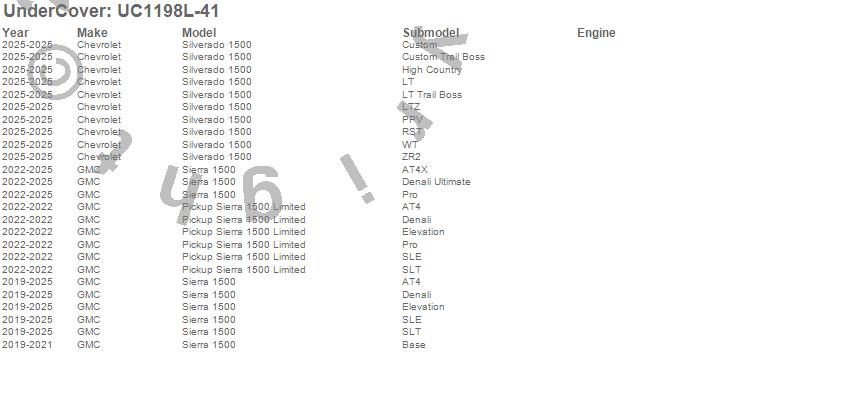 Below is an abbreviated list of applications for the Elite LX Tonneau Cover.