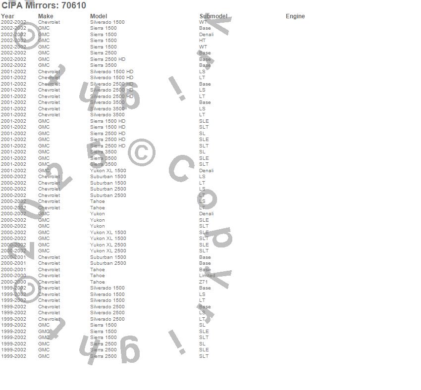 Below is an abbreviated list of applications for the Extendable Replacement Mirror.