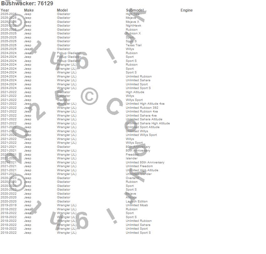 Below is an abbreviated list of applications for the TrailArmor Cowl Guard.