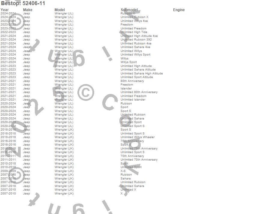 Wrangler (JK), Wrangler (JL), Jeep, 2024, 2023, 2022, 2021, 2020, 2018, 2017, 2016, 2015, 2014, 2013, 2012, 2011, 2010, 2009, 2008, 2007