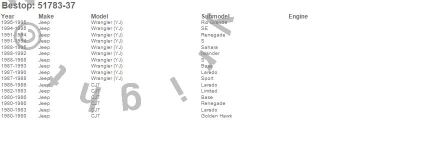 CJ7, Wrangler (YJ), Jeep, 1995, 1994, 1993, 1992, 1991, 1990, 1989, 1988, 1987, 1986, 1985, 1984, 1983, 1982, 1981, 1980
