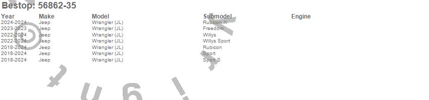 Below is an abbreviated list of applications for the Trektop Slantback Soft Top.