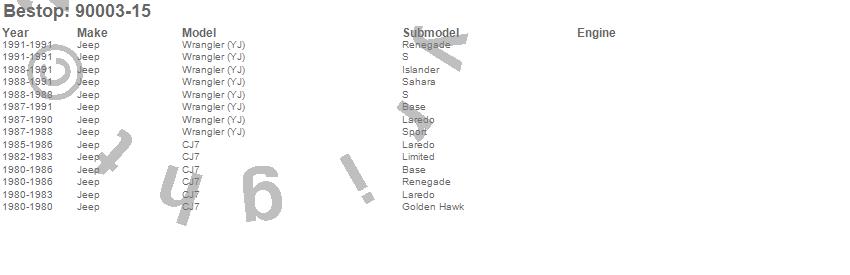 CJ7, Wrangler (YJ), Jeep, 1991, 1990, 1989, 1988, 1987, 1986, 1985, 1984, 1983, 1982, 1981, 1980