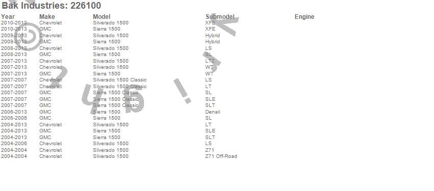 Below is an abbreviated list of applications for the BAKFlip G2 Hard Folding Truck Bed Cover.