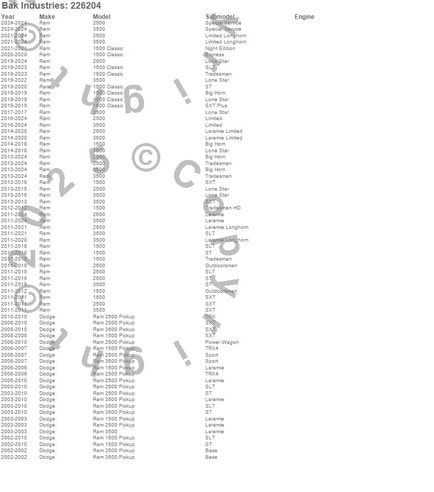 Below is an abbreviated list of applications for the BAKFlip G2 Hard Folding Truck Bed Cover.