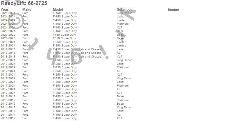 Below is an abbreviated list of applications for the Front Leveling Kit.