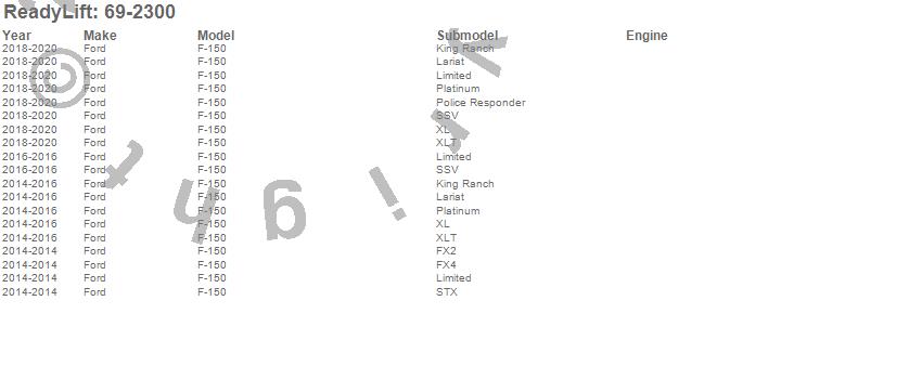 ReadyLift - SST Lift Kit P/N 69-2300 Features: