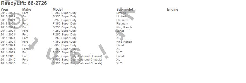 Below is an abbreviated list of applications for the Spring Lift Kit.