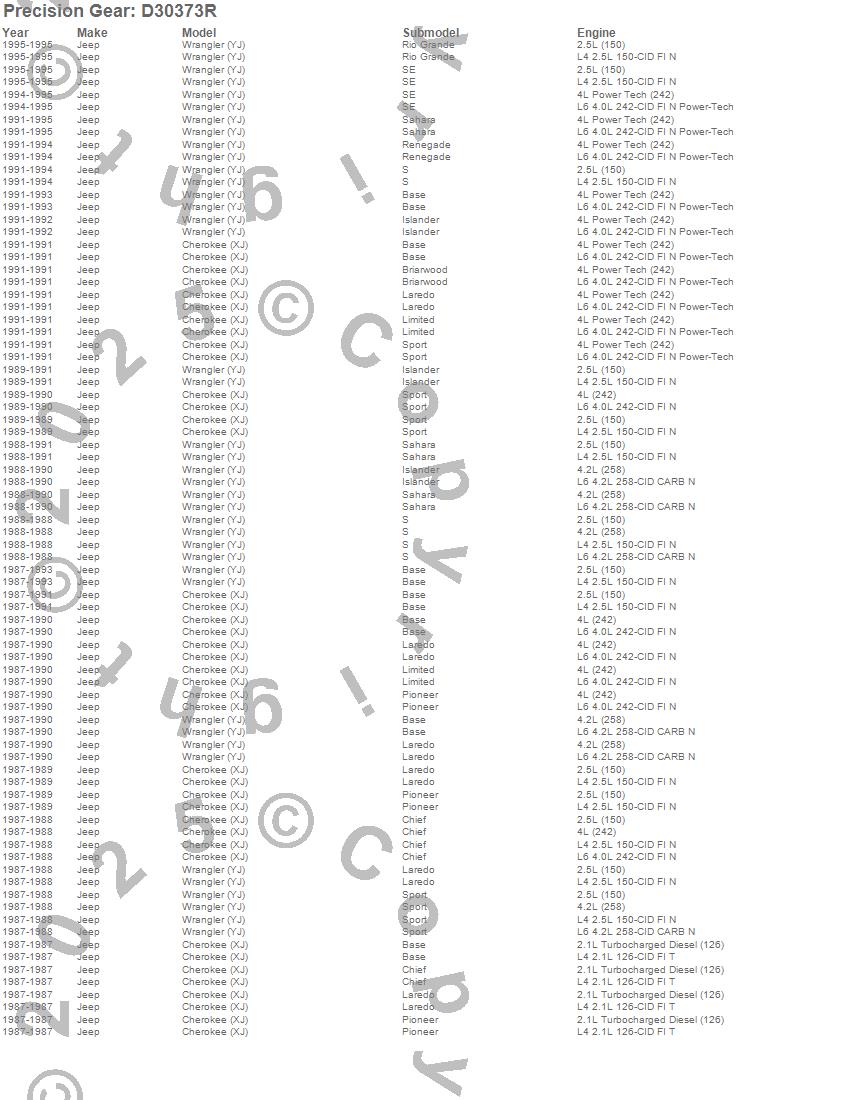 Below is an abbreviated list of applications for the Precision Gear Ring And Pinion Gear Set.