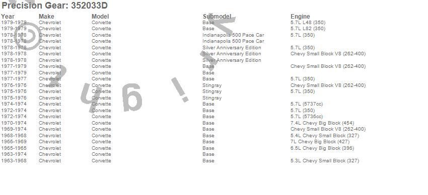 Below is an abbreviated list of applications for the Precision Gear Master Overhaul Kit.