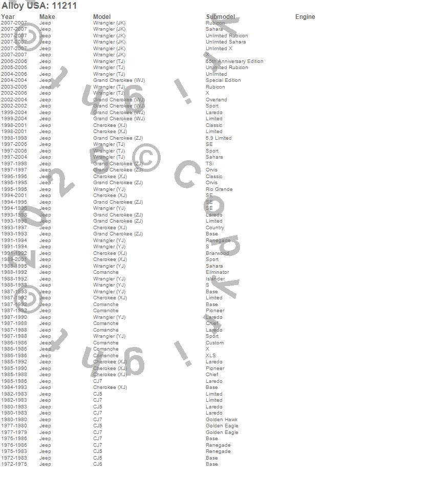 Cherokee (XJ), CJ5, CJ6, CJ7, Comanche, Grand Cherokee (WJ), Grand Cherokee (ZJ), Wrangler (JK), Wrangler (TJ), Wrangler (YJ), Jeep, 2007, 2006, 2005, 2004, 2003, 2002, 2001, 2000, 1999