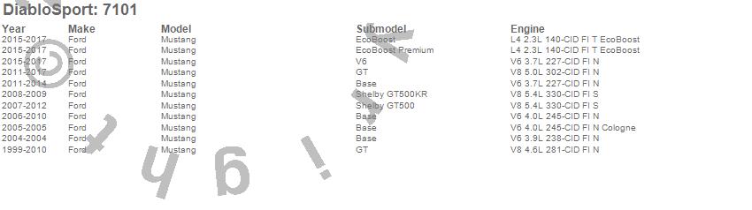 Below is an abbreviated list of applications for the Predator P2 Performance Tuner.