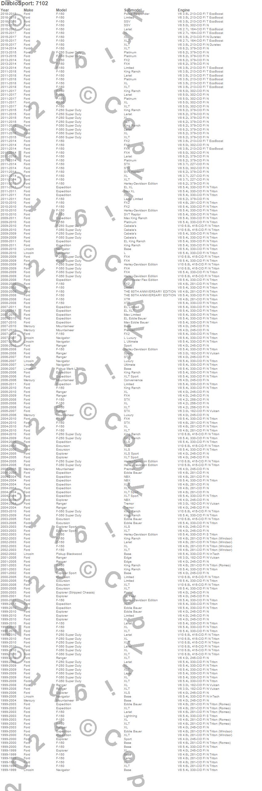 Below is an abbreviated list of applications for the Predator P2 Performance Tuner.