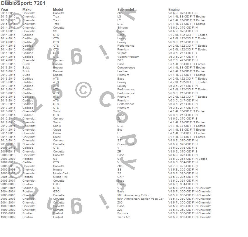 Below is an abbreviated list of applications for the Predator P2 Performance Tuner.