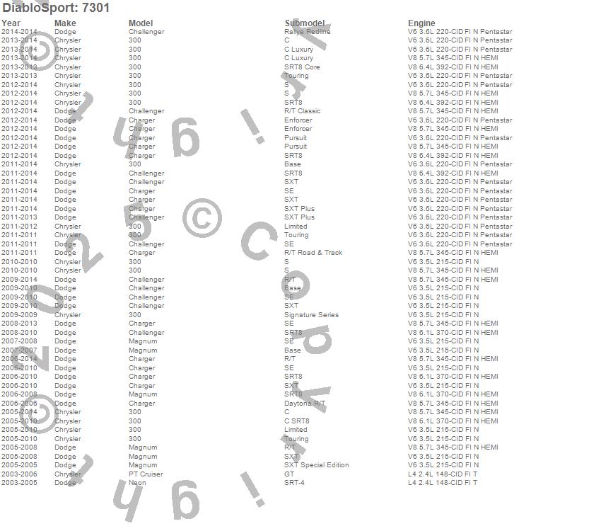 Below is an abbreviated list of applications for the Predator P2 Performance Tuner.