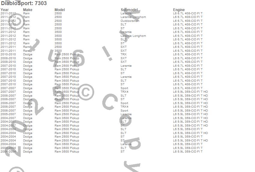 Below is an abbreviated list of applications for the Predator P2 Performance Tuner.