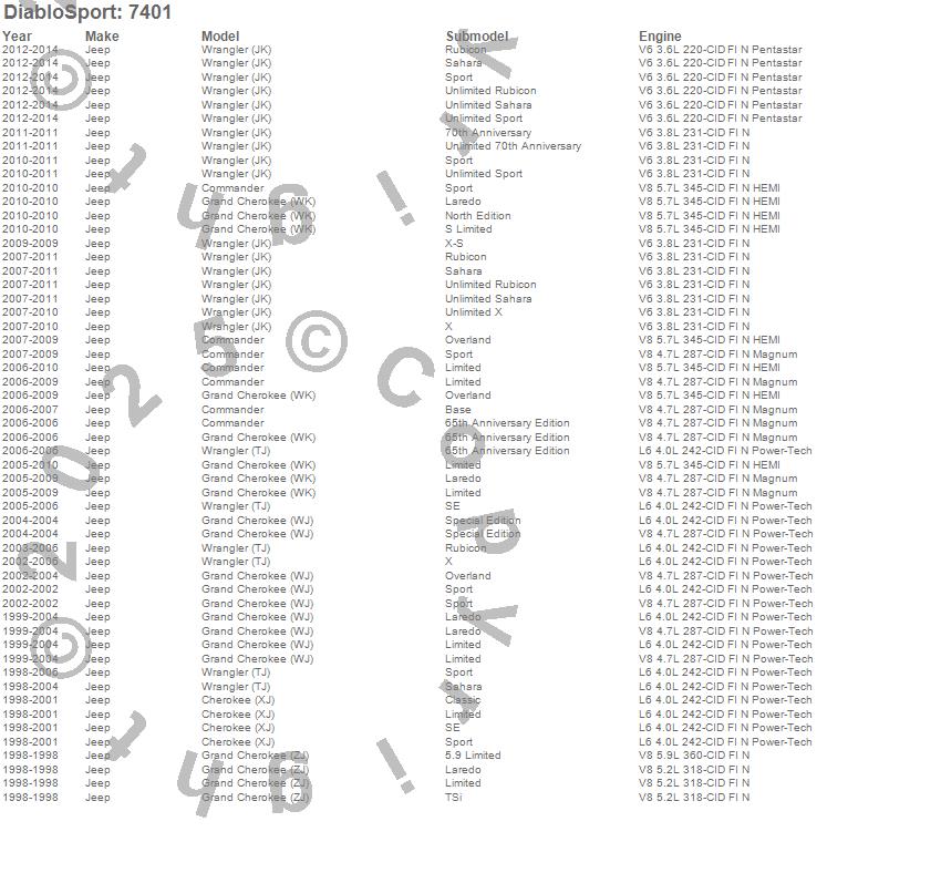 Below is an abbreviated list of applications for the Predator P2 Performance Tuner.
