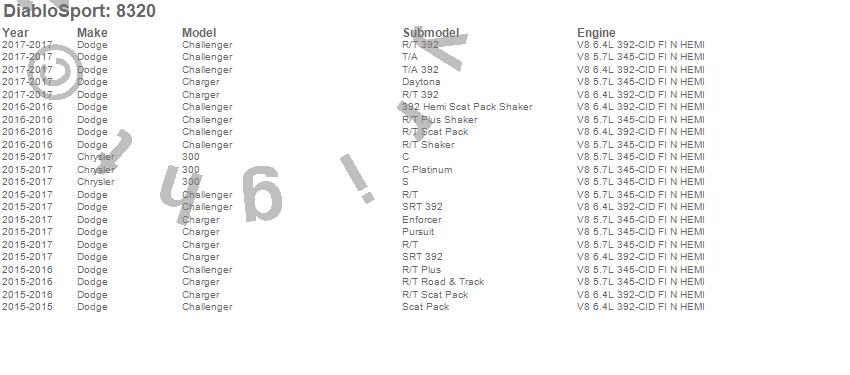 Below is an abbreviated list of applications for the inTune i3 Performance Programmer.