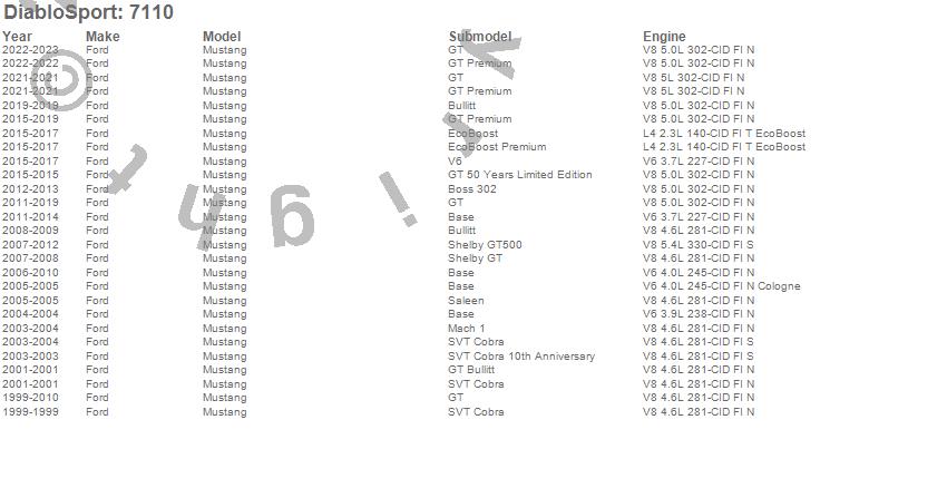 Below is an abbreviated list of applications for the Predator P2 Platinum Performance Tuner.