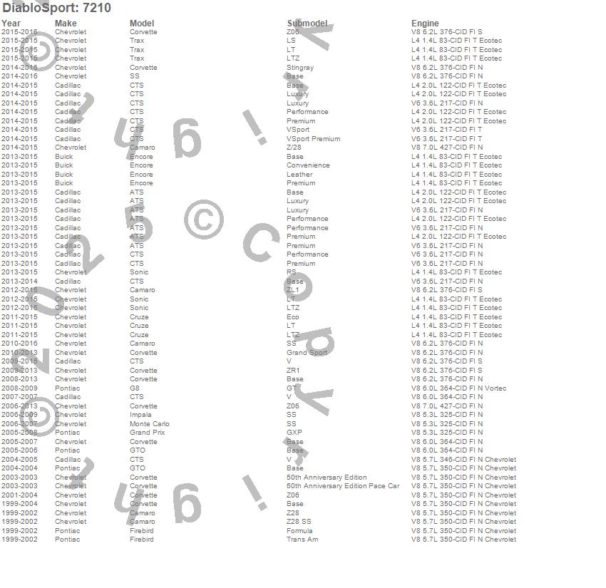 Below is an abbreviated list of applications for the Predator P2 Platinum Performance Tuner.