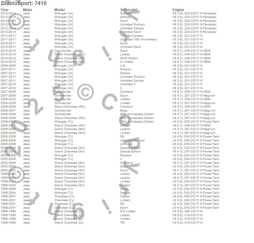 Cherokee (XJ), Commander, Grand Cherokee (WJ), Grand Cherokee (WK), Grand Cherokee (ZJ), Wrangler (JK), Wrangler (TJ), Jeep, 2014, 2013, 2012, 2011, 2010, 2009, 2008, 2007, 2006, 2005, 2004, 2003