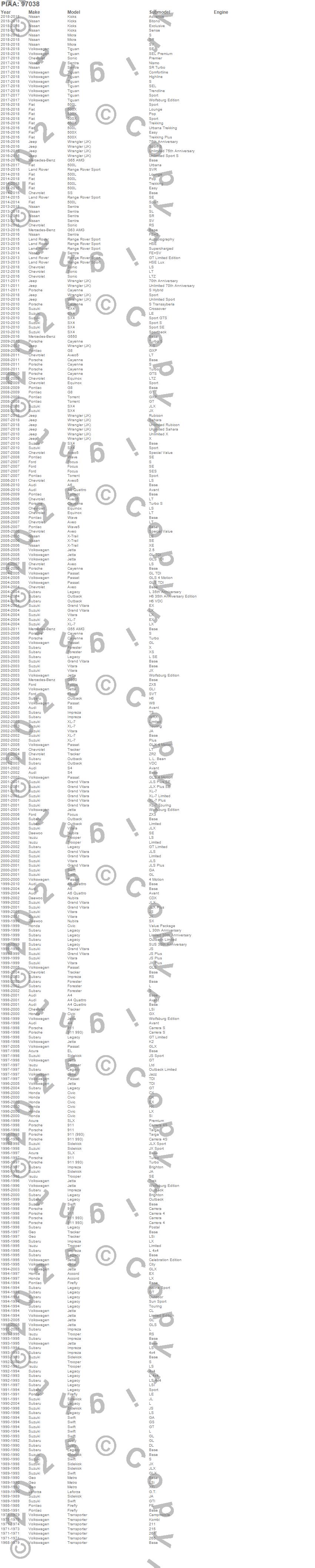 500L, 500X, 911, A4, A4 Quattro, A6, A6 Quattro, Accord, Aveo, Aveo5, Cayenne, Civic, EL, Equinox, Firefly, Focus, Forester, G500, G55 AMG, G550
