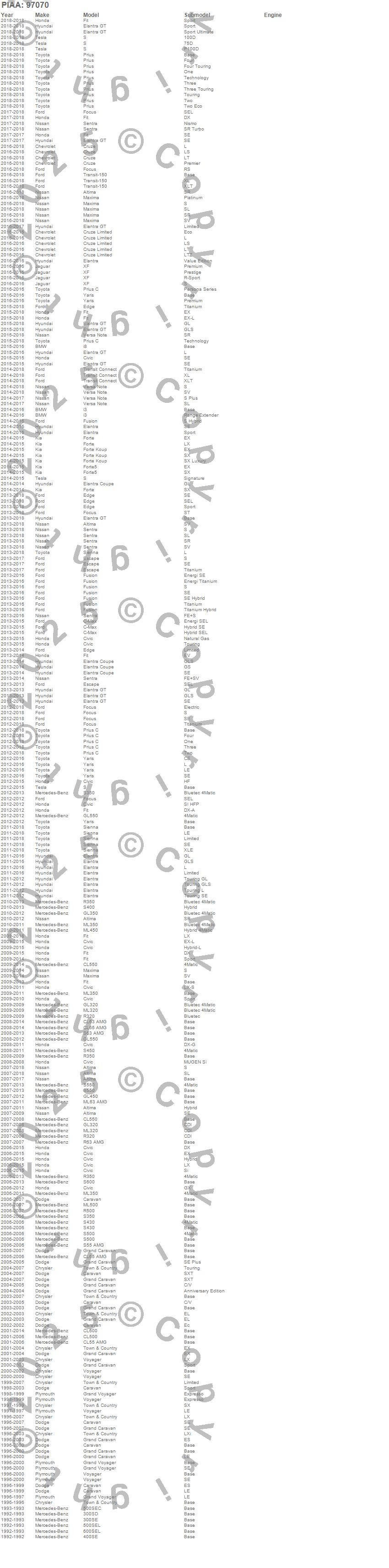 300SD, 300SE, 400SE, 500SEC, 500SEL, 600SEL, Altima, C-Max, Caravan, Civic, CL500, CL55 AMG, CL550, CL600, CL63 AMG, CL65 AMG, Cruze, Cruze Limited, Edge, Elantra