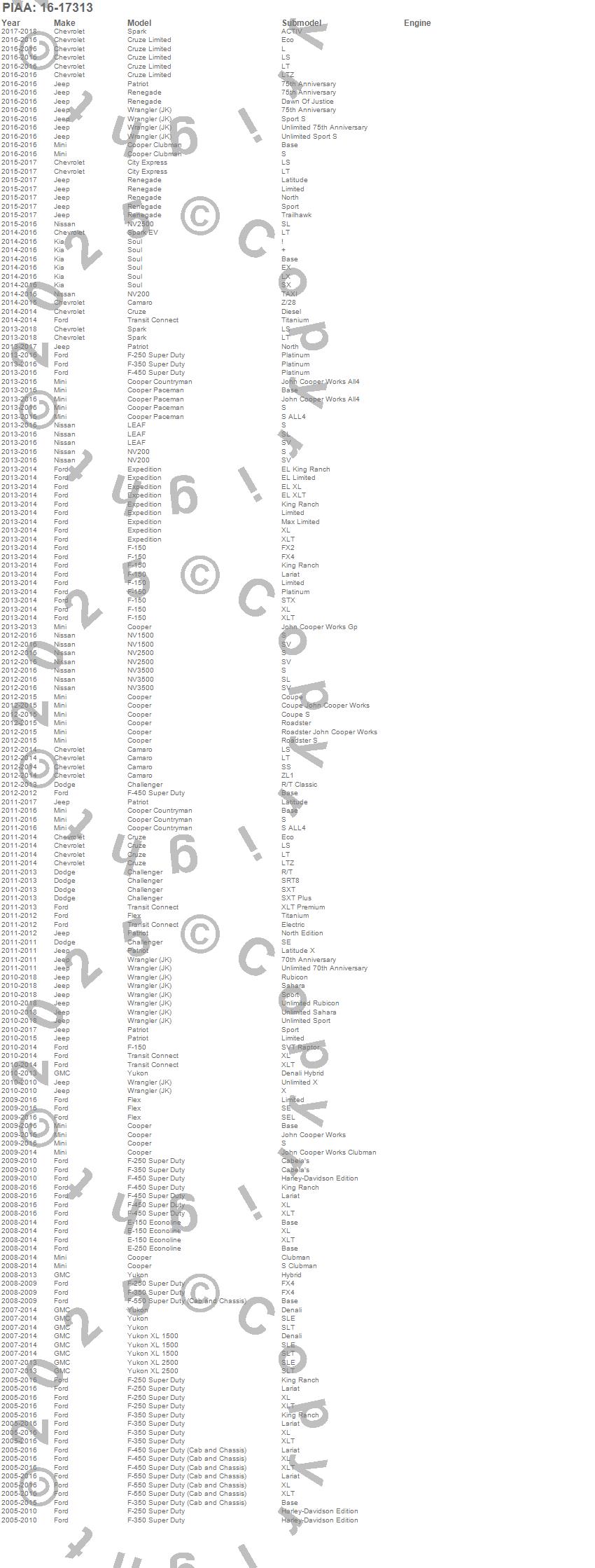 Camaro, Challenger, City Express, Cooper, Cooper Clubman, Cooper Countryman, Cooper Paceman, Cruze, Cruze Limited, E-150 Econoline, E-250 Econoline, Expedition, F-150, F-250 Super Duty, F-350 Super Duty, F-450 Super Duty, F-550 Super Duty, Flex, LEAF, NV1500