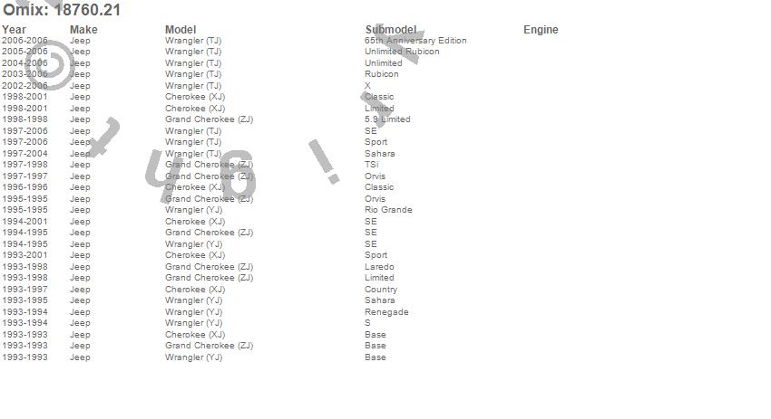 Cherokee (XJ), Grand Cherokee (ZJ), Wrangler (LJ), Wrangler (TJ), Wrangler (YJ), Jeep, 2006, 2005, 2004, 2003, 2002, 2001, 2000, 1999, 1998, 1997, 1996, 1995, 1994, 1993