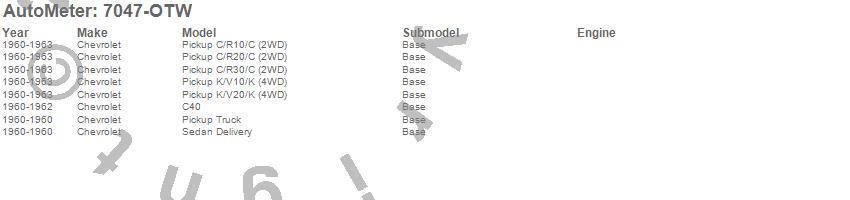 Below is an abbreviated list of applications for the Old Tyme White 6 Gauge Set RPM/MPH/Fuel/Oil/Wtr/Bat.