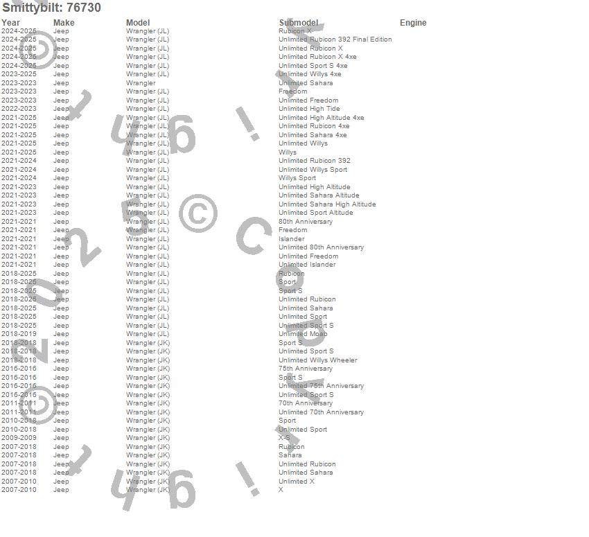 Wrangler, Wrangler (JK), Wrangler (JL), Jeep, 2025, 2024, 2023, 2022, 2021, 2020, 2019, 2018, 2017, 2016, 2015, 2014, 2013, 2012, 2011, 2010