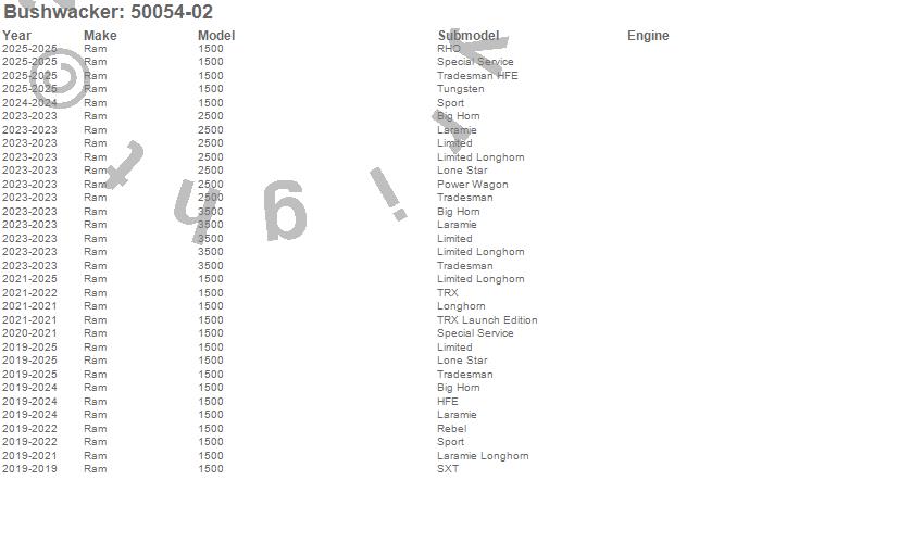 The innovator and creator of the fender flare category, Bushwacker¿ is a U.S. manufacturer of aftermarket and OE automotive accessories. The company specializes in quality products for trucks and Jeeps, utilizing ISO/TS standards with on-site design and tooling resources. Products include fender flares, bedrail caps, tailgate caps, and trail armor. Bushwacker is backed by more than 50 years of innovation and industry-leading customer service.