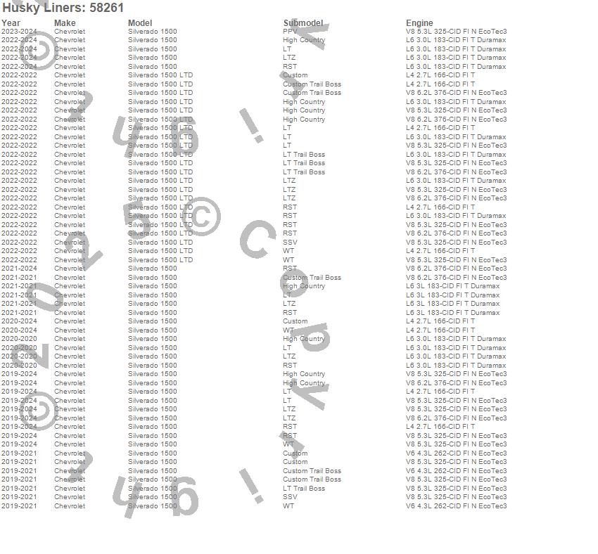 Below is an abbreviated list of applications for the Custom Molded Mud Guards.