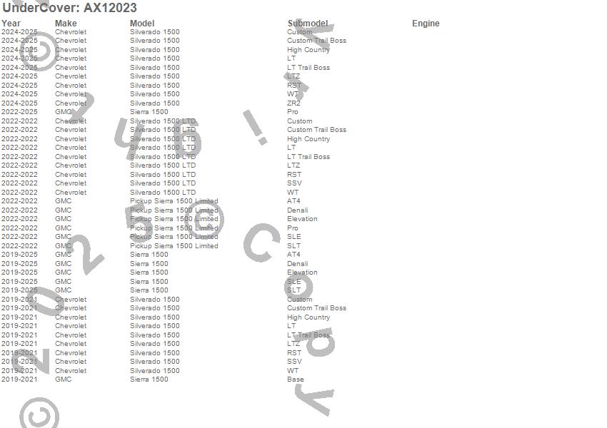 Below is an abbreviated list of applications for the Armor Flex Tonneau Cover.