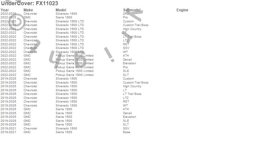 Below is an abbreviated list of applications for the FLEX Tonneau Cover.