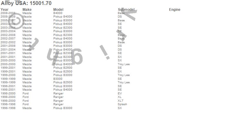 B2300, B2500, B3000, B4000, Ranger, Ford, Mazda, 2008, 2007, 2006, 2005, 2004, 2003, 2002, 2001, 2000, 1999, 1998