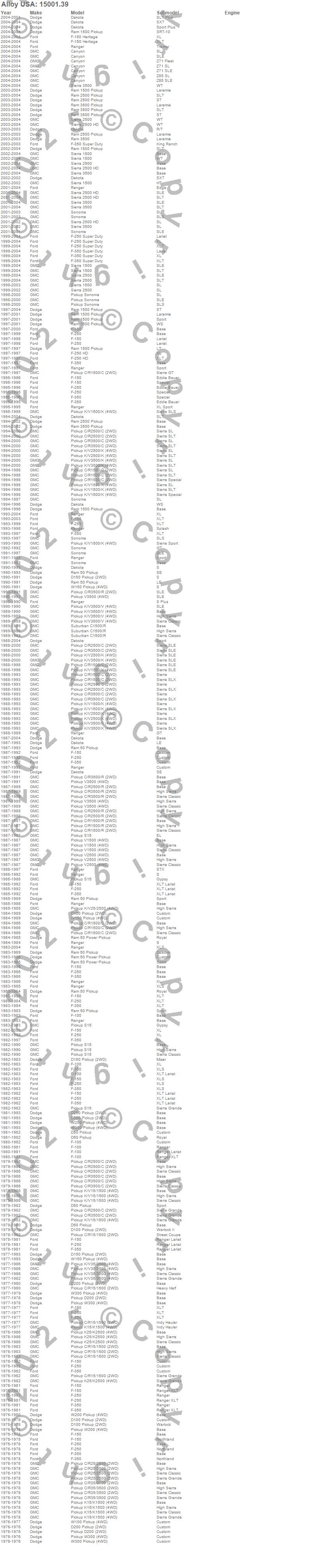 C1500 Pickup, C25/C2500 Pickup, C2500 Pickup, C35/C3500 Pickup, C3500 Pickup, Canyon, D100 Pickup, D150 Pickup, D200 Pickup, D250 Pickup, D350 Pickup, D50 Pickup, Dakota, F-100, F-150, F-150 Heritage, F-250, F-250 HD, F-250 Super Duty, F-350