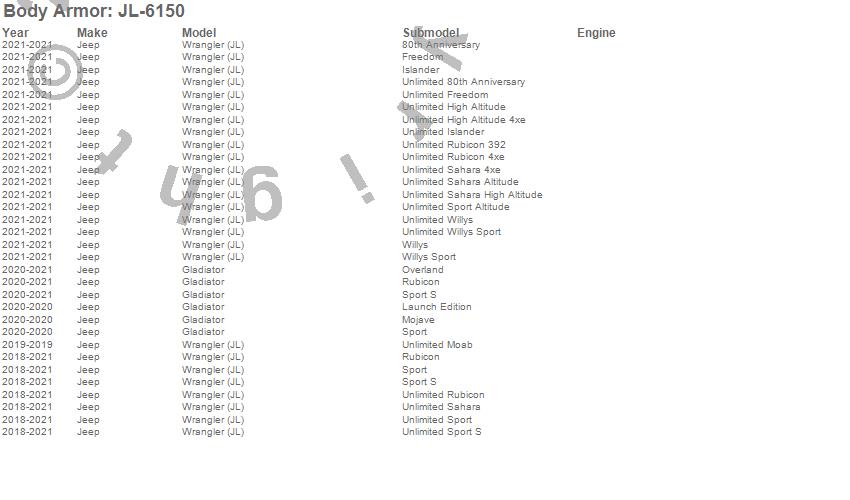 Body Armor - Trail Doors P/N JL-6150 Features:
