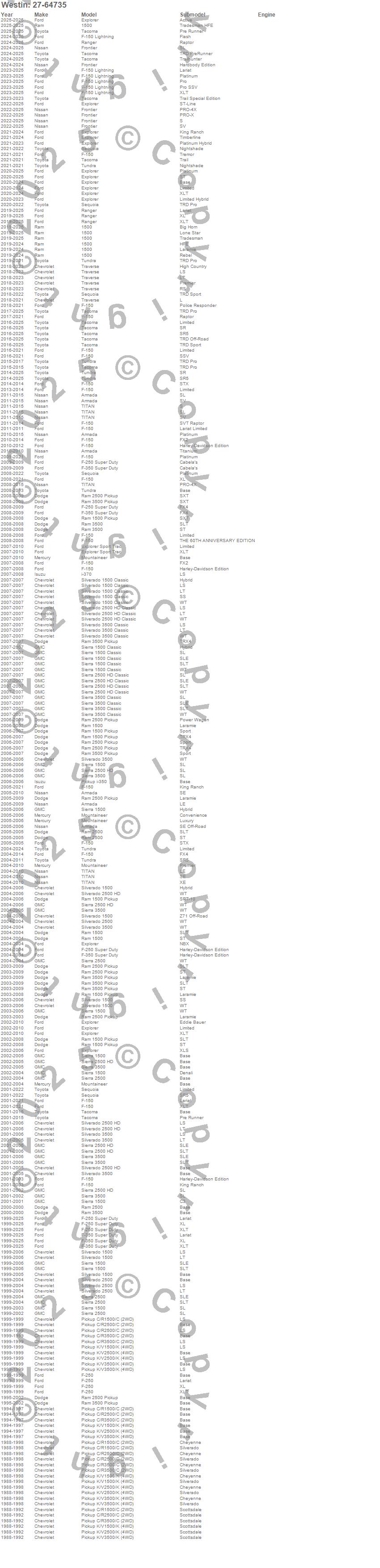 1500, Armada, C1500 Pickup, C2500 Pickup, C3500 Pickup, Explorer, Explorer Sport Trac, F-150, F-150 Lightning, F-250 Super Duty, F-350 Super Duty, F-450 Super Duty, F-550 Super Duty, Frontier, i-350, i-370, K1500 Pickup, K2500 Pickup, K3500 Pickup, Mountaineer