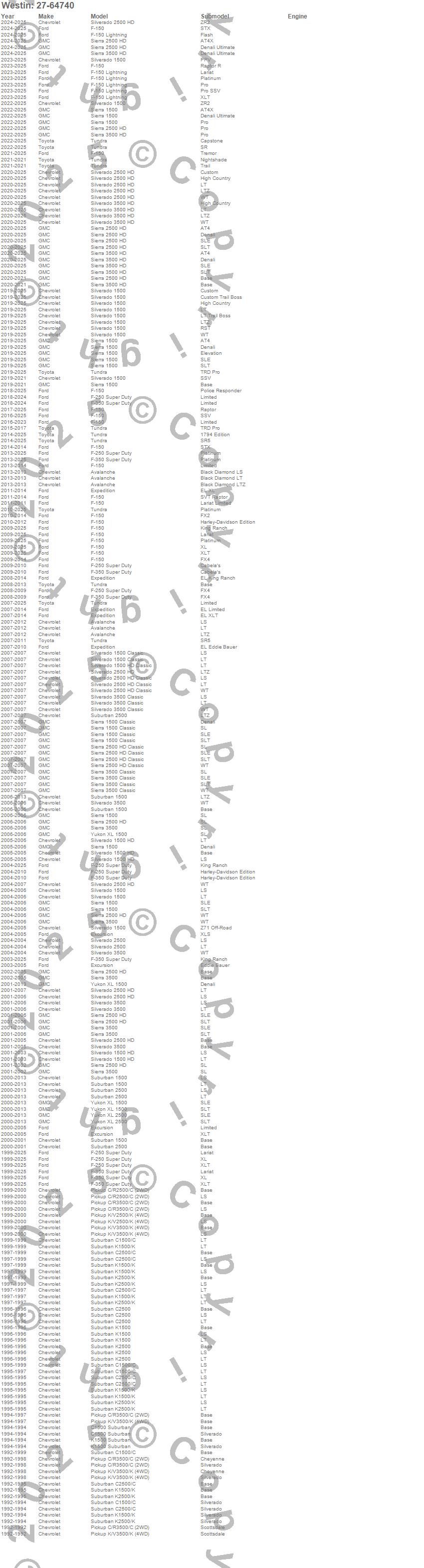 Avalanche, C1500 Suburban, C2500 Pickup, C2500 Suburban, C3500 Pickup, Excursion, Expedition, F-150, F-150 Lightning, F-250 Super Duty, F-350 Super Duty, F-450 Super Duty, F-550 Super Duty, K1500 Suburban, K2500 Pickup, K2500 Suburban, K3500 Pickup, Sierra 1500, Sierra 1500 Classic, Sierra 1500 HD