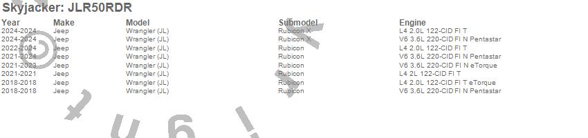 Skyjacker - Suspension Lift Kit P/N JLR50RDR Features: